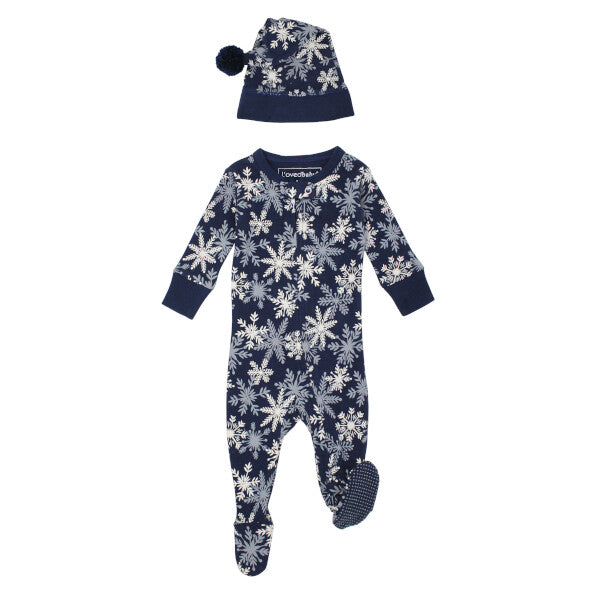 Snowflakes Organic Holiday 2-Way Zipper Footie & Cap Set