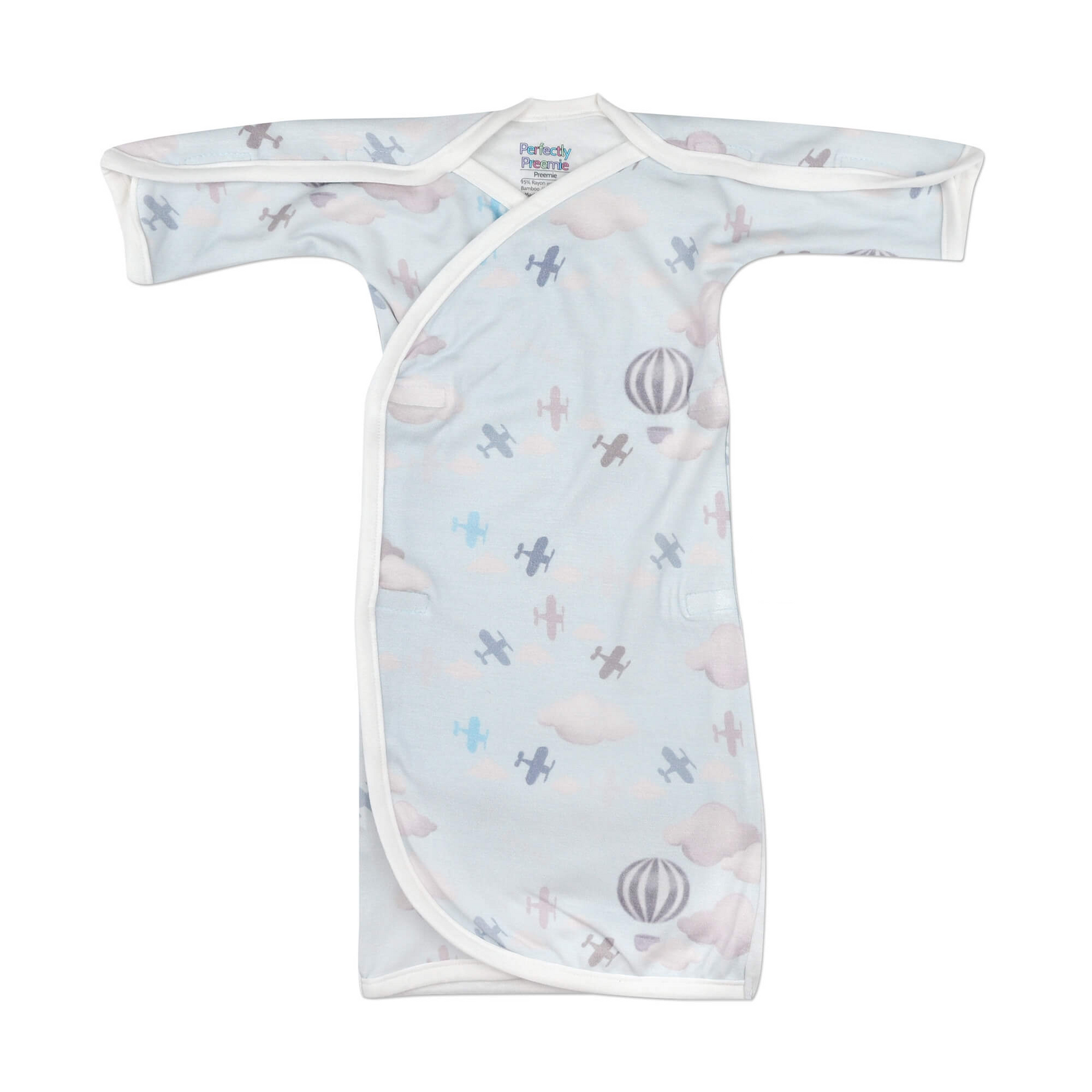 This NICU-Friendly gowns are a must-have in the NICU. The open shoulders work well for dressing around any medical needs. The fold-over bottom keep little feet warm and makes diaper changes quick and easy. The extra long velcro on each side, give a little growing room.